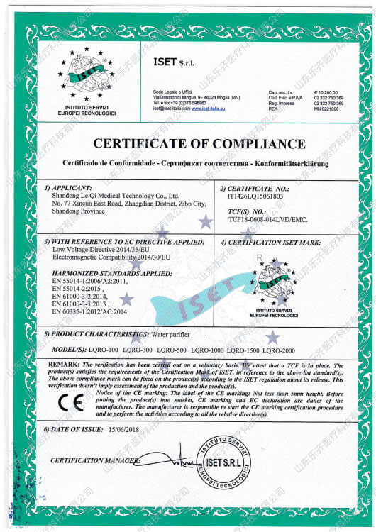 CE證書-純水機(jī)