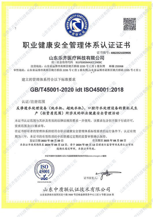 ISO職業(yè)健康安全管理體系認(rèn)證證書
