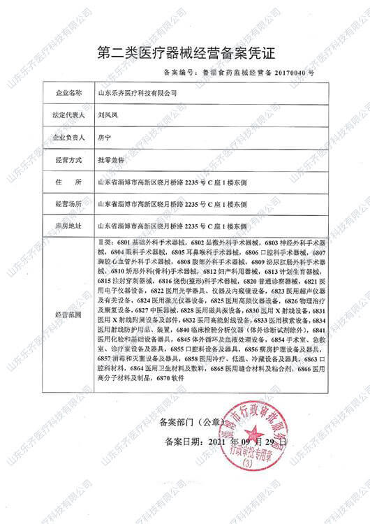 第二類醫(yī)療器械經(jīng)營備案憑證